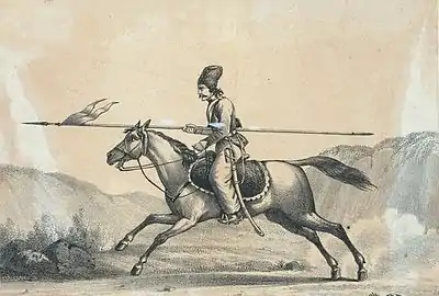 Another prestigious division in Nader's forces was the Savaran-e Sepah-e Khorasan (سواران سپاه خراسان), which can be translated as the "Riders of the Army of Khorasan". Drawn primarily from the Gilzai, Abdali, Kurds and other tribal elements in the Empire. The Afghan horsemen (both Gilzai & Abdali) were among the very finest of shock cavalry in Asia.[6] The size of this cavalry body fluctuated with time but at one point it was reported as 70,000 strong. Elements within the Savaran-e Sepah-e Khorasan were occasionally promoted by Nader to the Savaran-e Saltanati. The Savaran-e Sepah-e Khorasan played a decisive role in the final phase of the battle of Kars in which they participated in a huge flank attack, (40,000 strong), which Nader led personally.