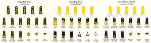 | Wikimedia Commons has media related to Military ranks of Thailand. |