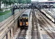From 1852 until 1997, the Illinois Central Railroad owned a right of way between downtown Chicago and Lake Michigan, in the area that became Grant Park and used it for railroad tracks.[8] In 1871, Union Base-Ball Grounds was built on part of the site that became Millennium Park; the Chicago White Stockings played home games there until the grounds were destroyed in the Great Chicago Fire.[9][10] Lake Front Park, the White Stockings' new ball grounds, was built in 1878 with a short right field due to the railroad tracks. The grounds were improved and the seating capacity was doubled in 1883, but the team had to move after the season ended the next year, as the federal government had given the city the land "with the stipulation that no commercial venture could use it".[9][10][11] Daniel Burnham planned Grant Park around the Illinois Central Railroad property in his 1909 Plan of Chicago.[12] In 1997, when the city gained airspace rights over the tracks, it decided to build a parking facility over them in the northwestern corner of Grant Park.[8] Eventually, the city realized that a grand civic amenity might lure private dollars in a way that a municipal improvement would not, and thus began the effort to create Millennium Park.[8] The park was originally planned under the name Lakefront Millennium Park.[13]