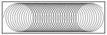 In this approach, the tool travels along a gradually evolving spiral path. The spiral starts at the center of the pocket to be machined and the tool gradually moves towards the pocket boundary. The direction of the tool path changes progressively and local acceleration and deceleration of the tool are minimized. This reduces tool wear.[14]