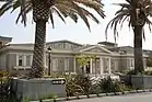 In reality, Milpitas has no concentrated downtown "center," but instead has several small retail centers generally located near residential developments and anchored by a supermarket. The so-called "Midtown" area, the oldest part of Milpitas, has few remaining historic residences and was the only commercial district that existed before 1945. Midtown is situated in the region where Main and Abel Streets run parallel to each other bordered by Montague Expressway in the south and Weller Street at the north end. A USPS post office, Saint John the Baptist Catholic Church, Elementary & Junior High Catholic School, the Milpitas Public Library (which incorporates the old Milpitas Grammar School building), the Smith/DeVries mansion, the Senior Center, and Elmwood Correctional Facility are all in the Midtown section of Milpitas. The Milpitas Civic Center, which includes City Hall, is not located in Midtown, but stands at the intersection of Milpitas and Calaveras Boulevards. The Civic Center is separated from Midtown by the Calaveras overpass. The boundaries that divide major Milpitas neighborhoods and districts include Calaveras Boulevard running from east to west and the Union Pacific railroad, which runs from north to south. The newest retail centers are west of Interstate 880.