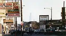 Milwaukee Avenue runs through the commercial heart of Chicago's vibrant and trendy Wicker Park and Bucktown neighborhoods. The Double Door theater and Irazu Costa Rica Restaurant front the avenue in this section. On an episode of Food Network's Diners, Drive-ins and Dives, host Guy Fieri walks from the Milwaukee Avenue pavement to Irazu's outdoor patio to sample the food for the TV audience.[2]