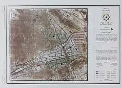 Mina (Arabic: منى, romanized: Minā), also transliterated as Muna, and commonly known as the City of Tents[1][2] is a valley and neighborhood located in the Masha'er district of Mecca in the Makkah Province of Saudi Arabia, 8 kilometres (5 miles) southeast of Mecca, covering an area of approximately 20 km2 (7.7 sq mi). Mina incorporates the tents, the Jamarat area, and the slaughterhouses just outside the tent city.[1]