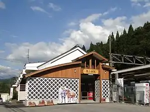 Minami-Otari Station (南小谷駅, Minami-Otari-eki) is a railway station on the Ōito Line in the village of Otari, Kitaazumi District, Nagano Prefecture, Japan. The station is numbered "9".[2] The station is on the electrical borderline of the JR East and JR West systems and operations are shared between the two companies.[1] The section south of this station, operated by JR West is not electrified and all JR East services terminate here.