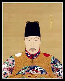 David M. Robinson contends that various edicts and laws issued by the Hongwu Emperor, founder of the Ming dynasty, seem to reject the Mongol influence in China with the banning of Mongolian marriage and burial practices, clothing, speech and even music.[55] However, Robinson highlights how this rhetoric contradicts the Hongwu Emperor's continuation of Yuan institutions such as the hereditary garrison system and occupations. He initiated campaigns to conquer areas not previously controlled by native Chinese dynasties, including territories in Yunnan, Liaodong (Manchuria), and Mongolia.[56] He continued to recruit Mongols into the military and maintained the Yuan-era tradition of bringing Korean concubines and eunuchs into the imperial palace.[56] Robinson claims that the Ming dynasty "was in many ways a true successor" to the Yuan, as the Ming emperors sought to legitimize their rule through the Yuan legacy, especially since the rival Northern Yuan Dynasty continued to exist.[57] The Yongle Emperor was far more explicit in invoking a comparison between his rule and that of Kublai Khan, as reflected in his very active foreign policy, projection of Ming Chinese power abroad and expansionist military campaigns.[58] Following the 1449 Tumu Crisis, the Ming government actively discouraged further immigration of Mongol peoples (favoring occasional relocation policies for those who already lived in China).[59] Mongols continued to serve as Ming military officers even after Mongol involvement in the failed 1461 Rebellion of Cao Qin, yet their numbers began to decline as hereditary officers in general were gradually replaced by men of more humble origins.[60]