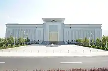 The Ministry of Adalat (Justice) of Turkmenistan (Turkmen: Türkmenistanyň adalat ministrligi) regulates the activities of the country's justice bodies. Since its inception in 1993 (two years after Turkmenistan declared independence from the Soviet Union), the ministry provides legal support to the state, and performs other tasks assigned by the Law of Turkmenistan to ensure the protection of the rights, freedoms and legitimate interests of the Turkmen citizen.[3] It was originally established on 6 September 1972 as the Justice Ministry of the Turkmen SSR. In 2003, President Saparmurat Niyazov ordered the Ministry of Justice to be renamed as the Ministry of Adalat. With Adalat being the Turkic word for justice, the change in terminology was intended to convey fairness, honor, and order within the ministry's affairs.[4] The Ministry of Justice was also given new responsibilities that included inventorying all state-owned and private properties and overseeing the lawyers, notaries, and civil-registration offices in Turkmenistan.[5]