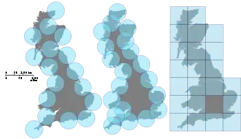 To calculate this dimension for a fractal S, imagine this fractal lying on an evenly spaced grid, and count how many boxes are required to cover the set. The box-counting dimension is calculated by seeing how this number changes as we make the grid finer by applying a box-counting algorithm.