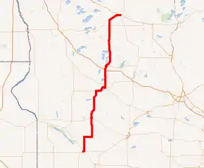 A paved surface was applied to the roadway in stages from Alexandria to Parkers Prairie from 1926 through 1933.[7][8] South of Alexandria, it was paved to the county line in 1931,[9] and to a Northern Pacific railway crossing at Glenwood in 1933.[10] Also in 1933, the highway was realigned between Deer Creek and Wadena, providing a shorter, more direct route.[11]