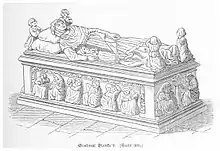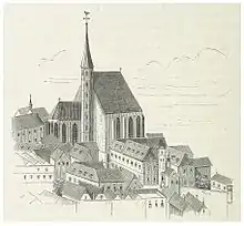 After the city fire of 1275, the foundation-stone for the new church was placed by Ottokar Přemysl.[2] It was one of the first Gothic churches in the east-Austrian area. After Ottokar's death in the battle on the Marchfeld, he was laid out here thirty weeks.[2]
