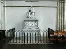 This monument, made by Lucardi, was erected in memory of the "Poet Laureate" Metastasio in 1855. In the central relief, Pope Pius VI is depicted blessing the dying poet. Behind him are the composer Salieri followed by W.A. Mozart, while J. Haydn is looking at the Pope.