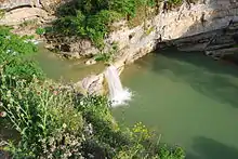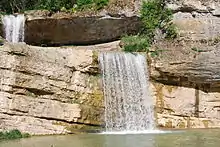 The geological structure of the park consists of ultra basic rocks and volcanic-sedimentary formations (diabase chert) of Jurassic Era and the carbonates from the lower and upper Cretaceous.[3] The geological structure of Mirusha canyon mainly compose Mesozoic limestone cliffs with tendency to drop in the direction of the water flow. Extension of these rocks in the direction northwest–southeast, and dropping to the southeast, presents geological extension of rocks.