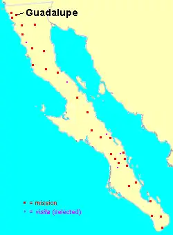 Mission Guadalupe was founded by the Dominican missionary Félix Caballero in June 1834, at the site of the modern community of Guadalupe, Baja California. This was the last of the new Dominican missions in Baja California and the only one begun after Mexico had gained its independence in 1821.