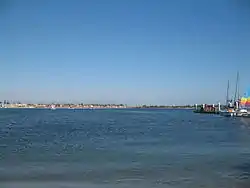 On the east side of the bay is a network of channels and islands which are used by wind surfers and water skiers.