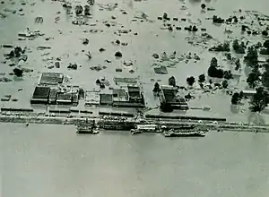 The flood occurred on the Mississippi and Missouri rivers and their tributaries between April to October 1993. The flooded area totaled around 30,000 square miles (80,000 km²)[16] and was the worst since the Great Mississippi Flood of 1927 as measured by duration, square miles inundated, persons displaced, crop and property damage and number of record river levels.