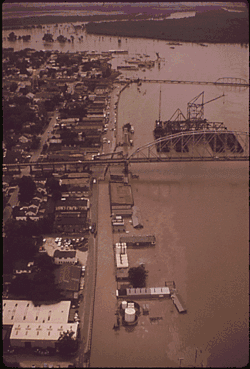 The Mississippi Flood of 1973 occurred between March and May 1973 on the lower Mississippi River.[5] The flood resulted in the largest volume of water to flow down the Mississippi since the Great Mississippi Flood of 1927. Both the Bonnet Carre Spillway and the Morganza Spillway were employed. The Bonnet Carre was fully opened between April 7 and June 14 for a record 75 days. The 1973 flood was the first time the Morganza Spillway was opened: from April 19 through June 13.