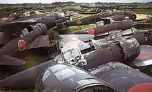 In early combat operations, the Zero gained a reputation as a dogfighter,[3] achieving an outstanding kill ratio of 12 to 1,[4] but by mid-1942 a combination of new tactics and the introduction of better equipment enabled Allied pilots to engage the Zero on generally equal terms.[5] By 1943, due to inherent design weaknesses, such as a lack of hydraulic ailerons and rudder, which rendered it extremely unmaneuverable at high speeds, and an inability to equip it with a more powerful aircraft engine, the Zero gradually became less effective against newer Allied fighters. By 1944, with opposing Allied fighters approaching its levels of maneuverability and consistently exceeding its firepower, armor, and speed, the A6M had largely become outdated as a fighter aircraft. However, as design delays and production difficulties hampered the introduction of newer Japanese aircraft models, the Zero continued to serve in a front-line role until the end of the war in the Pacific. During the final phases, it was also adapted for use in kamikaze operations.[6] Japan produced more Zeros than any other model of combat aircraft during the war.[7]