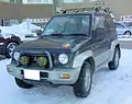 The Mitsubishi Pajero Junior is a mini SUV produced by Japanese automaker Mitsubishi Motors between October 1995 and June 1998 for the Japanese domestic market only. Based on a lengthened Minica platform, it was a larger version of the Mitsubishi Pajero Mini, a kei car. The biggest visual difference from the Pajero Mini is the wide fender trims and wider tyres, giving it a more purposeful appearance. It did benefit from moderate ownership costs to Japanese buyers, due to the exterior dimension being within the favorable compact size class according to Japanese Government dimension regulations, and the small displacement engine obligated a minimal annual road tax, although at reduced advantage compared to the kei car-based Pajero Mini.
