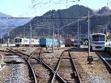 Mitsumineguchi Station is the terminus of the Chichibu Main Line, and is located 71.7 km from the opposing terminus of the line at Hanyū.[1] It is also served by through services to and from the Seibu Chichibu Line.