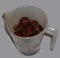 Mocochinchi (from the Quechua for dried peach) is a Bolivian beverage. It is made with peaches that have been peeled and dried. The fruits are left in water overnight, then boiled with sugar and cinnamon. The drink is served cold, and often, after finishing the drink, the peach is eaten.