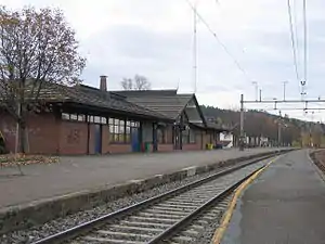 Moelv Station (Norwegian: Moelv stasjon) is a railway station located in Moelv in Ringsaker, Norway on the Dovre Line. The station was opened in 1894 with the construction of the railway between Hamar and Tretten. A station building was first constructed in 1981. Moelv is only served by regional trains by Vy and night trains by SJ Norge.