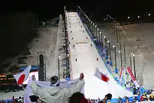 Mogul skiing is a freestyle skiing competition consisting of one timed run of free skiing on a steep, heavily moguled course, stressing technical turns, aerial maneuvers and speed.[1] Internationally, the sport is contested at the FIS Freestyle World Ski Championships, and at the Winter Olympic Games.