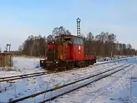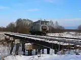 The Mokeiha-Zybinskoe peat railway (Russian: Узкоколейная железная дорога Мокеиха-Зыбинского торфопредприятия) is located in Yaroslavl Oblast, Russia. The peat railway was opened in 1950, and has a total length of 15 kilometres (9.3 mi) and is operational as of 2016. The track gauge is 750 mm (2 ft 5 1⁄2 in) and operates year-round.[1]