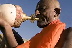Seashells including the sacred chank or shankha Turbinella pyrum; "Triton's trumpet" Charonia tritonis; and the Queen Conch Strombus gigas have been used as musical instruments around the world.[8][9][10]