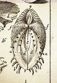 In his 1758 Systema Naturae, and then in his 1771 Fundamenta Testaceologiae, the pioneering taxonomist Carl Linnaeus used a series of "disquieting[ly]"[71] sexual terms to describe the Venus shell: vulva, anus, nates (buttocks), pubis, mons veneris, labia, hymen.[71][72][73] Further, he named the species Venus dione, for Venus, the goddess of love, and Dione, her mother. The evolutionary biologist Stephen Jay Gould called Linnaeus's description "one of the most remarkable paragraphs in the history of systematics".[71][74] Some later naturalists found the terms used by Linnaeus uncomfortable; an 1803 review commented that "a few of these terms however strongly they may be warranted by the similitudes and analogies which they express, ... are not altogether reconcilable with the delicacy proper to be observed in ordinary discourse",[71] while the 1824 Supplement to the Encyclopædia Britannica criticised Linnaeus for "indulg[ing] in obscene allusions."[71]