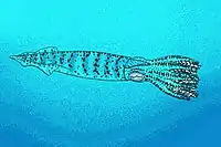 An Coleoidan, member of the family Ostenoteuthidae. A unique group o coeloids, only found o this location.[26] |