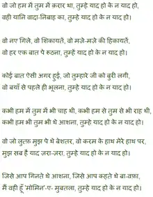 - Wohī, yaʿnī waʿdah nibāh kā; tumhēⁿ yād hō, keh nah yād hō[2]