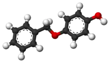 Monobenzone, also called 4-(Benzyloxy)phenol and monobenzyl ether of hydroquinone (MBEH) is an organic chemical in the phenol family with chemical formula C6H5CH2OC6H4OH.[1][2] It is used as a topical drug for medical depigmentation.[3] It is a colourless solid that is classified as the monobenzyl ether of hydroquinone. Monobenzone is soluble in alcohol, benzene, and diethyl ether, and practically insoluble in water.