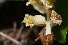 Monotropa hypopitys, the so-called Dutchman's pipe, false beech-drops, pinesap, or yellow bird's-nest, is a herbaceous perennial plant, formerly classified in the families Monotropaceae or Pyrolaceae, but now included within the subfamily Monotropoideae of the family (Ericaceae). It is native to temperate regions of the Northern Hemisphere, and is scarce or rare in many areas. However, it is still the most widespread member of the subfamily. While currently included in the genus Monotropa, recent genetic evidence strongly suggests that Monotropa hypopitys should be placed in its own genus, Hypopitys, with the single species Hypopitys monotropa Crantz, but possibly containing several other species.[1]