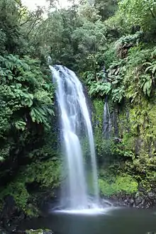 Most of the park is covered montane rainforest with trees up to 40 metres (130 ft) tall and covered in lianas, orchids and ferns such as bird's-nest fern (Asplenium nidus). The forest is isolated from other rainforests by the surrounding dry region. There are plantations of Eucalyptus and exotic conifers, pines, Araucaria and an invasive alien bush, Lantana camara.[2] Over one thousand species of plants are recorded.[1]