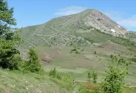 The mountain belongs to the Ligurian Alps and is located on the main chain of the Alps. On its top three ridges meet; one ot them heads West dividing two tributary valleys of the Roya, Vallon du Réfrei (north) and Vallon du Morignole.[4] Going North the main chain of the Alps connects the mountain with the Colle delle Selle Vecchie, while southwards the saddle of Colla Rossa (2172 m) divides the Monte Bertrand from the neighbouring Cime de Missun. On the Italian side of the mountain runs a former-military dirt road connecting Monesi (a village of the municipality of Triora) with the colle di Tenda. The summit of the Monte Bertrand is marked by a cairn and a summit cross and can be easily seen from Upega, a village of the iItalian comune of Briga Alta, and by Morignolo, located in the French mairie of La Brigue.