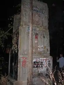 A log portion of the original Oklahoma Row was moved north and now sits on the east side of Highway 94 in Monte Ne. It is used for storage. The three-story concrete-and-stone tower still stands and remains above water on the edge of Beaver Lake. This section is often incorrectly referred to as the bank building and the honeymoon suite. Monte Ne was added to the National Register of Historic Places in 1978 because of the historic significance of being so closely associated with Harvey and its unique architecture and engineering.[66] Despite this, what is left of Monte Ne has fallen victim to severe neglect and vandalism. It is covered with spray paint and graffiti, as well as being cracked and full of debris. In 2011 the fire department was called to help a person who had climbed to the top floor and gotten stuck in the chimney. Because of this incident and the general state of the remains, the Army Corps of Engineers erected a temporary barbed wire fence around the tower.[67]
