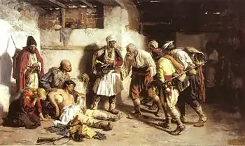 The Piperi and Kuči tribes together attacked Koći, killing a small part, while they found Ottomans in tower houses whom they wanted to destroy with wooden cannons.[2] An epic poem about the war tells how Abdi Pasha the Cherkessian with 20,000 soldiers of the sanjak of Scutari was sent by the sultan to attack the Kuči and Piperi.[3] The poem tells how part of the army advanced on Koći and then fought in Zatrijebač and Fundina.[3]