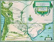 - Monte-VI-D-E-O (Monte VI De Este a Oeste): According to Rolando Laguarda Trías, professor of history, the Spaniards annotated the geographic location on a map or Portolan chart, so that the mount/hill is the VI (6th) mount observable on the coast, navigating Río de la Plata from east to west.[27][28][29] With the passing of time, these words were unified to "Montevideo". No conclusive evidence has been found to confirm this academic hypothesis nor can it be asserted with certainty which were the other five mounts observable before the Cerro.