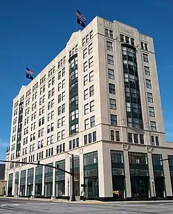 The Montgomery Building, listed on the National Register of Historic Places, is an iconic building located on Church Street in Spartanburg, Spartanburg County, South Carolina. It was built in 1924, and is a ten-story, nine-bay-wide, steel frame skyscraper faced in precast concrete. It originally housed the offices of textile companies, cotton brokers, and factories. The building also contained a theatre/auditorium space, a radio and television station. The Montgomery Building was the tallest building in Spartanburg until the 1950s.[2][3] In 2016, a developer announced that they planned to renovate the building for mixed-use to include apartments, offices and retail. Restoration began in Spring 2017 and was completed in December 2018.[4]