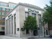 There are several buildings listed on the National Register of Historic Places within the area; they all make up the Montgomery County Courthouse Historic District,[4] which was designated in 1986.[1] The district is focused on what remains of Rockville's old commercial, governmental, and residential center, most of which was demolished during urban renewal in the 1960s. The district includes two county courthouses, the 1891 red brick Romanesque Revival structure and the 1931 Neo-classical granite building with a 1960s addition, the 1939 Georgian-styled Post Office of limestone construction, and the 1930 Art Deco stone structure built for the Farmers Banking and Trust Company. It extends over an area of two city blocks. The 1891 courthouse was designed by prominent Baltimore architect Frank E. Davis.
