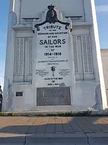 The building of the Montreal clock tower was directed by the Montreal Harbor Commission.[3] The commission which was formed in the year 1830 to oversea the infrastructural development of the Old Port of Montreal and was replaced by the National Harbours Board in 1936.[4] The tower marks the entrance to the Old Port of Montreal and its erection was dedicated to the seamen who died in the First World War.[4] It is a symbol of the port's economic contribution through grain exportation to the city of Montreal during the era of the Clock Tower's construction.[1]