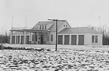 The Mooers Border Inspection Station in Mooers, New York, is one of seven existing border inspection stations built between 1931 and 1934 along the New York–Canada border. Colonial Revival in style, the building was designed by Louis A. Simon, Superintending Architect of the Architectural Division of the Treasury, and constructed in 1932. Border stations were constructed by the federal government in the New England states along the border with Canada during the 1930s and several common plans and elevations can be discerned among the remaining stations. Mooers shares with the others a residential scale, a Neocolonial style, and an organization to accommodate functions of both customs and immigration services.[3]