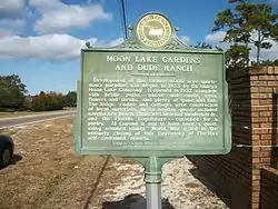 Historical marker for the Moon Lake Gardens and Dude Ranch along Pasco County Road 587.