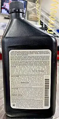 The plastic ATF+ and ATF+2 bottles were shaped like the existing brake fluid bottles of the day and ATF+ fluid was often accidentally poured into hydraulic brake systems by mechanics. The ATF+3 bottle was the normal shaped plastic oil bottle with the offset spout.[3]