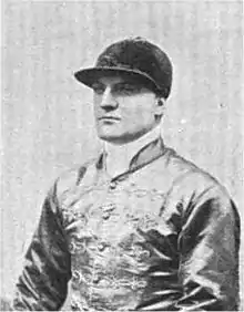 He had his first mount in public on 11 October 1886, on his father's mare Coraline at Kempton in the Middlesex All-aged Selling Plate. He finished well behind. His first mount in 1887 was at the Epsom Spring Meeting. Claiming the 5 pound apprentice allowance, he rode Koster at 6 stone 3 pounds in the Metropolitan Stakes. Cannon's first race win occurred shortly before his fourteenth birthday, on 20 May 1887, in the City Bowl Salisbury.[5] on Mr H E Tidy's Flint.[6] By 1900 Cannon had won 1,542 races.[4] His most famous mount was Flying Fox with which he captured the 1899 St. Leger Stakes, 2,000 Guineas and Epsom Derby, securing the Triple Crown.[8] During his career, he was noted as having good hands for piloting 2-year-old horses.[9]