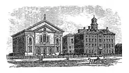 Founded by the Society of Jesus and chartered by the Commonwealth of Massachusetts in 1863, Morrissey College is the original school of Boston College. Its charter provided that no student could be refused admission “on account of the religious opinions he may entertain.”[5] Three Jesuit instructors and 22 students, all males mostly from Boston's marginalized Irish Catholic immigrant community, made up the college when it opened its doors on September 5, 1864.[6] Robert Fulton, S.J., an alumnus of Georgetown University, served as Morrissey College's first dean and later president.[7] Nine students received A.B. degrees, the first bachelor's degrees awarded, in 1877.[8]