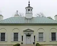 The churches were used for inoculations for smallpox. That first headquarters, Arnold's Tavern, was eventually moved .5 miles (800 m) south of the green onto Mount Kemble Avenue to become All Souls Hospital in the late 19th century. It suffered a fire in 1918, and the original structure was demolished, but new buildings for the hospital were built directly across the street.[33][34]