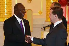 Moses Ebuk presents his diplomatic credentials to President of Russia Dmitry Medvedev on 27 February 2009.