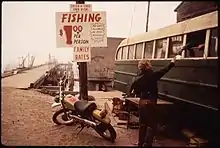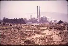 Moss Landing was originally called Moss.[5] The Moss post office opened in 1895, and changed its name to Moss Landing in 1917.[5] It is named for Charles Moss, a Texas ship captain who with a partner built a wharf there.[5][6] It became a busy whaling and fishing port and a location for fish processing plants and canneries. The Moss Landing Harbor District, established in the 1940s, dredged channels and built piers. Moss Landing Power Plant opened in 1950. The California State University system founded Moss Landing Marine Laboratories in 1966 (it was rebuilt nearby after the Loma Prieta Earthquake destroyed the facility in 1989), and in the mid-1990s the Monterey Bay Aquarium Research Institute was moved to Moss Landing from Pacific Grove. In the 1980s sanitary sewers were installed.[6]