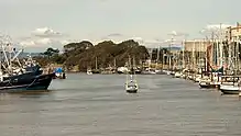 Moss Landing, formerly Moss,[5] is a census-designated place (CDP) in Monterey County, California, United States.[4] Moss Landing is located 15 miles (24 km) north-northeast of Monterey,[5] at an elevation of 10 feet (3 m).[4] It is located on the shore of Monterey Bay, at the mouth of Elkhorn Slough, and at the head of the submarine Monterey Canyon.