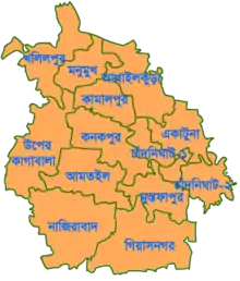 Moulvibazar Municipality is subdivided into 9 wards and 48 mahallas.[3]